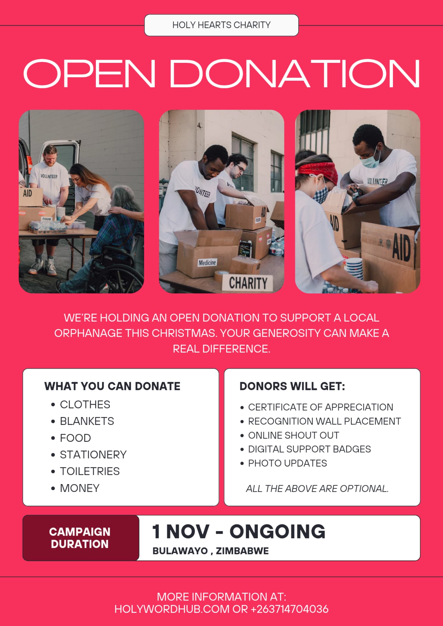 Holy Hearts Charity is excited to announce the Happy Christmas Drive, a heartfelt initiative aimed at supporting children and staff at orphanages in need, with John Smale Orphanage as our first potential beneficiary.